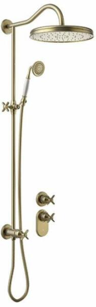 Falon kívüli kivitel Tartalmazza a termosztátos belső egységet 310 mm-es gömbcsuklós fejzuhannyal 78 mm-es vízkőmentesített kézi zuhannyal Duplán reteszelt zuhanytömlővel Matt, kopott réz színben