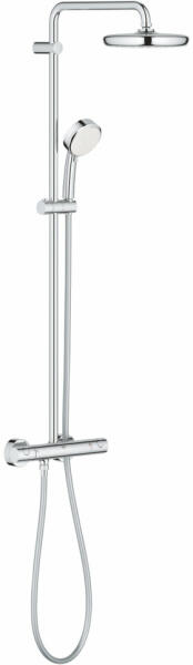 az alábbiakból áll: vízszintesen elforgatható 390 mm-es zuhanykar falon kívüli termosztát Aquadimmerrel lehetővé teszi a vízkimenetek közti váltást Tempesta 210 fejzuhany (26 408) zuhanysugár: Rain gömbcsuklóval elfordítható könyök ±15° Tempesta Cosmopolitan 100 kézizuhany (27 571 001) 2-féle vízsugárral: Rain, Jet funkciók magasságában állítható kézizuhany-tartó