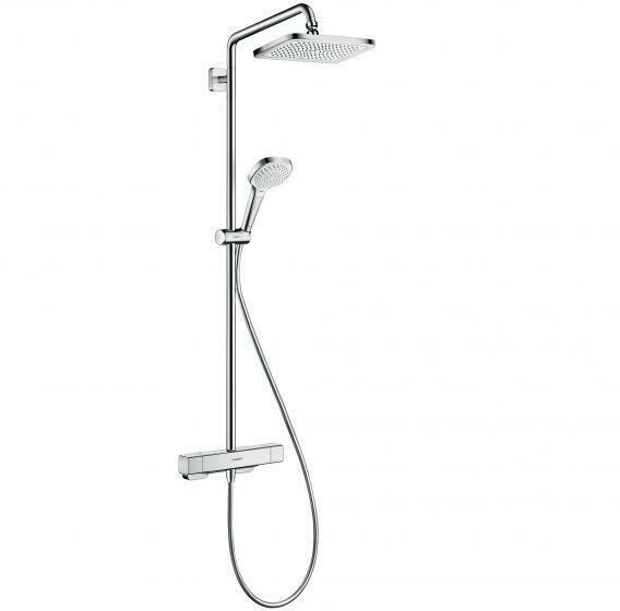 Hansgrohe Croma E zuhanyrendszer 280 1jet termosztáttal, króm 27630000 Termékjellemzők garancia: 5 év fejzuhany Croma E 280 1jet mennyezeti zuhany mérete: 280 x 170 mm vízsugár fajta (fejzuhany): RainAir vízsugártárcsa felülete: króm RainAir vízsugár átfolyási mennyisége (3 bar mellett): 15 l/perc a kézizuhany vízsugár fajtája: Masszázssugár, IntenseRain, SoftRain kézizuha