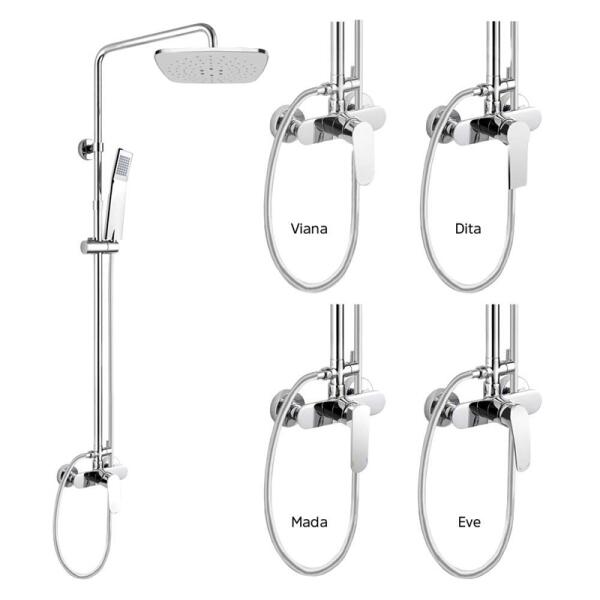A zuhanykészlet tartalmaz egy csaptelepet zuhanygarnitúrával, egy kézi és egy tányérzuhany 225x225 mm-es. Az akkumulátorokat 150 mm-es osztásközzel és 150 cm-es duplazáras rozsdamentes csatlakozó tömlővel szállítom. A Dita sorozat első pillantásra lenyűgöz robusztus felépítésével és első osztályú kialakításával. A minőségi anyagok garantálják ezen akkumulátorok