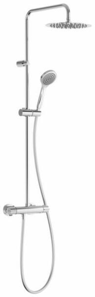 Falon kívüli termosztátos zuhanycsaptelep 250 mm-es gömbcsuklós fejzuhannyal Vízkőmentesített kézi zuhannyal Szatén zuhanytömlővel Zuhanyváltó beépített átfolyáskorlátozóval Króm kivitel