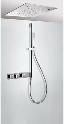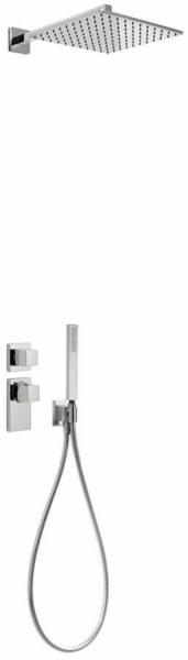 Vízelzáróval és víz mennyiség szabályzóval Rejtett csaptelep Beépített testet tartalmazza Fix esőztető zuhanyfej 500x500mm 2 állású (29995401) Zuhanytartóval Hossza: 760mm Vízkőálló kézizuhany (20263901) Szatén tömlő(913460915)