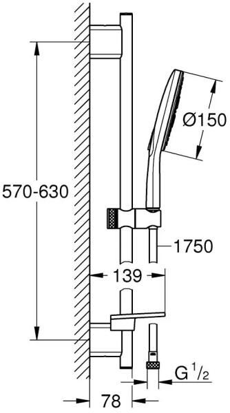 az alábbiakból áll:Vitalio SmartActive 150 kézi zuhany (26 597)zuhanyrúd 600 mmfém falitartókkalVitalioFlex Silver gégecső, 1750 mm (27 506 000)GROHE EasyReach polcGROHE Water Saving 9.5 liter/perc vízmennyiség szabályozásGROHE DreamSpray tökéletes zuhanysugárGROHE Long-Life felületkezelésGROHE FastFixation Plus(állítható távolság a tartókonzolok között a meglévő furato
