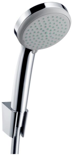 Hansgrohe Croma 100 Vario-Porter S zuhanyszett fali tartóval, gégecsővel 27592000 tartalmazza a következőket: kézizuhany, zuhanytartó, zuhanycső zuhanyfej mérete: 100 mm vízsugár fajta: Rain, normál vízsugár, sampon vízsugár, masszázs vízsugár vízsugár fajta kiválasztása forgatható vízsugártárcsával maximális átfolyási mennyiség 3 bar mellett: 18 l/perc zuhanyoldali