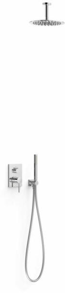 Falba építhető kivitel Tartalmazza a belső egységet 250 mm átmérőjű mennyezeti gömbcsuklós fejzuhannyal Vízkőmentesített kézi zuhannyal és fali tartóval Szatén zuhanytömlővel Króm kivitel