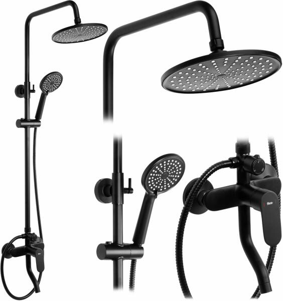 TRENDY'S zuhanyoszlop, három funkcióval, matt fekete kerámia hímzéssel A zuhanyoszlop a következő funkciókat integrálta: - kádcsaptelep kádcsaptelep funkcióval az oszlop elülső részébe szerelve. - mobil zuhany (egy funkció, a rúdon csúsztatható) - fő zuhanyoszlop felső zuhanyoszloppal A zuhanyoszlop funkciói közötti váltás a csap előlapjára szerelt terelő segítségé