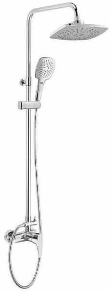 Zuhanyoszlop Esőztető rendszerrel, keverő csapteleppel Telepítés módja Falra szerelhető Szín Króm 40 mm-es kerámia betét Anti-Calc system, 1500mm hosszú acél duplán fonott gégecső 3 funkciós kézizuhany 255x133 mm méretben acél rúd állítható magassággal: 900- 1200mm állítható magasságú és dőlésszögű zuhanyfej anyaga: sárgaréz, acél és krómozott műanyag króm