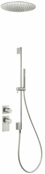 Falba építhető kivitel Tartalmazza a termosztátos belső egységet 380 mm-es rozsdamentes acél mennyezeti fejzuhannyal 760 mm-es zuhanyrúd vízbemenettel Vízkőmentesíte tt kézi zuhannyal Szatén zuhanytömlővel Acél színben