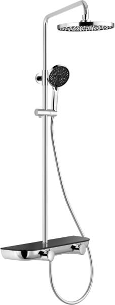 Termék leírása: Oszlop anyaga: rozsdamentes acél Oszlop felület: króm Zuhanyoszlop magasság: 800-1100 mm Zuhanyoszlop szélessége: ø24 mm Távolság a faltól: 420 mm Csúszó kézi zuhanyfej tartó Esőzuhany anyaga: ABS Az esőzuhany felületkezelése: króm/fekete Esőzuhany fej mérete: ø225 mm Kézizuhanyfej anyaga: ABS A kézizuhanyfej felületkezelése: króm/fekete Funkciók szá