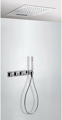 Vízelzáróval és víz mennyiség szabályzóval Rejtett csaptelep Beépített testet tartalmazza Fix esőztető zuhanyfej vízeséssel 500x500mm 2 állású (29995501) Vízkőálló kézizuhany (20263901) Szatén tömlő(913460915)