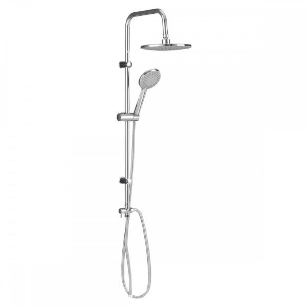 Ferro Wizard zuhanyszett fej- és kézi zuhannyal, króm Fejzuhany: állítható magasságú fém zuhanyrúd: 81 - 115 cm állítható szerelési magasság kerek, műanyag fejzuhany átmérője: 20 cm gömbcsukló - a zuhanytányér dőlésszögének beállításához Ferro Easy Clean System - a vízkőlerakódás könnyű eltávolításához Kézizuhany: 3 funkciós kerek kézizuhany funkciók: e