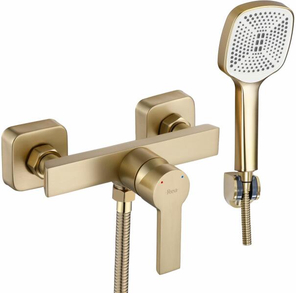 Rea Argus, zuhanycsap kézi pontos zuhanykészlettel, arany matt, REA-B6413 Gyártó: Rea Sorozat: Argus Akkumulátor típusa: zuhany akkumulátor Szín: arany Felület: matt Anyaga: sárgaréz Szerelés: falra szerelhető Szerelési távolság: 150 mm Kerámia fej A kézi zuhanyfej méretei: 11 x 23,5 cm A csomag tartalma: zuhany csaptelep, zuhanycső 150 cm, kézi zuhanyfej, kézizuhany tartó,