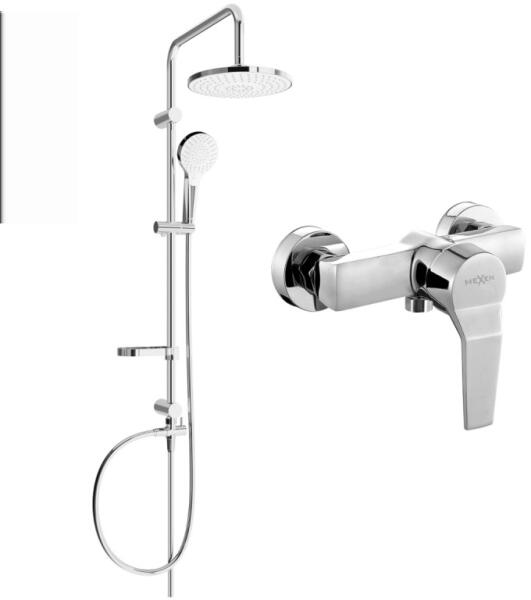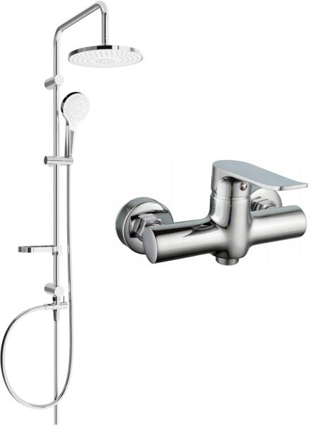 Műszaki adatok: Oszlop anyaga: rozsdamentes acél, ABS Oszlop befejezése: króm Magasság: 950 mm Oszlop szélesség: 22 mm Távolság a faltól: 380 mm Szappantartó Csúszó tartó a kézfejhez Állítható tartókonzolok Esőzuhany anyaga: műanyag Esőzuhany bevonat: króm / fehér Zuhanyfej mérete: ø225 mm Fej anyaga: műanyag A kézidarab felülete: króm / fehér Funkciók száma: 3 Csa