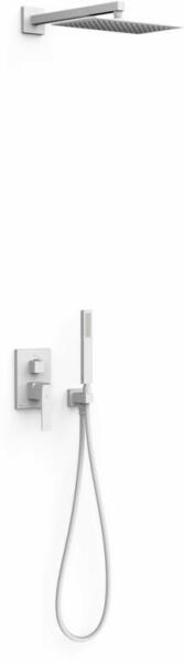 Falba építhető belső egységgel 2 utas, egykaros keverőcsaptelep Átfolyáskorl tozóval 300 x 200 mm-es fali rozsdamentes acél fejzuhany gömbcsuklóval Vízkőmentes kézi zuhannyal és fali tartóval Szatén zuhanytömlővel Matt fehér színben