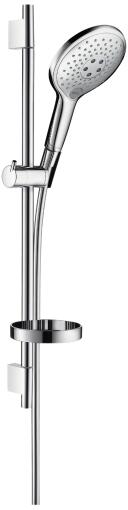 Jellemzők: tartalmazza a következőket: kézizuhany, zuhanyrúd, zuhanycső, csúszka, szappantartó zuhanyfej mérete: 150 mm vízsugár fajta: CaresseAir, kevert, RainAir kényelmes vízsugár választás a Select gombbal dőlésszöge 90°-kal állítható, a zuhanytartó balra és jobbra, valamint felfelé és lefelé elfordítható maximális átfolyási mennyiség 3 bar mellett: 16,4 l/per