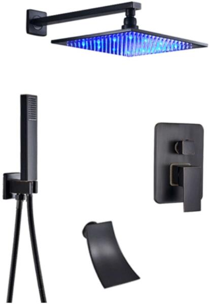 Corina Black zuhanyszett csaptelep nélkül Termékjellemzők Szín fekete Zuhanyfej 20 cm Anyag rozsdamentes acél Zuhanyfej anyag ABS Kézizuhany ABS Méret 90x36 cm A Corina Black zuhanyszett stílusos fekete szinével, letisztult formáival minden környezetbe remekül illik! A Corina Black zuhanyszett stílusos és modern megjelenésű. Az ABS kézi zuhanyfej és esőztető minőségi anyagb