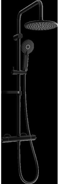 PVD bevonatú merész fekete zuhanyoszlop, modern kialakítással. |Zuhany csaptelep felső vízkimenettel|Állítható teleszkópos felszállócső (min. magasság 84 cm, maximum magasság 135 cm)|O20 cm átmérőjű vízkőmentes zuhajfej|1 funkciós kézizuhany|1.5 m-es magas minőségű, flexibilis gégecső|Állítható kézizuhany tartó|Automata zuhanyváltó|Ujjlenyomatmentes felület|PVD
