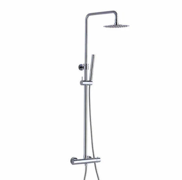 NERO Thermo-Pro-2 falra szerelhető zuhanyrendszer falon kívüli felszállócsővel, króm színben. A váltókapcsoló segítségével a víz folyása a zuhanyrózsából vagy a 25 cm-es fejzuhanyból történhet. A szett része egy termosztátos zuhanycsaptelep, ami formavilágában is illeszkedik a kerek kialakítású esőztetőhöz és kézizuhanyhoz. Csaptelep: anyaga sárgaréz 35 mm-es ke