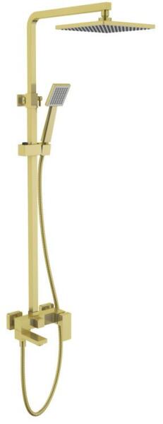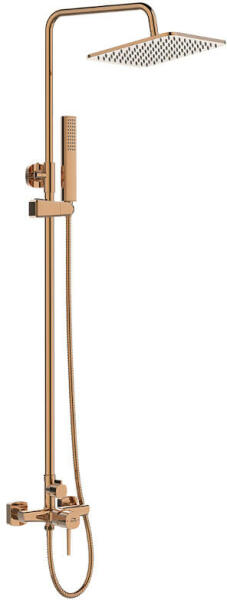 Laveo Pola, zuhanygarnitúra karos csapteleppel, rózsaszín arany, LAV-PLA_80KX Gyártó: Laveo Sorozat: Fél Típus: zuhanygarnitúra karos csapteleppel, kézizuhannyal és fejzuhannyal Szín: rózsa arany Felület: fényes Szélesség: 200 mm Magasság: 940-1385 mm Teljes mélység: 430 mm Szerelés: falra szerelhető Szerelési távolság: 150 mm A kézi fej fúvókáinak száma: 1 Áramlási