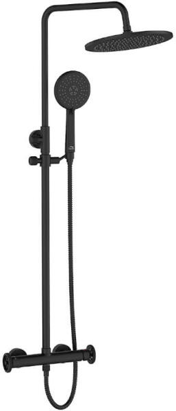 Hansgrohe Vernis Shape, Showerpipe 240 1jet EcoSmart 9 l, termosztáttal, fekete matt, HAN-26429670 Termékleírás és paraméterek Tartalma: fejzuhany, kézi zuhany, zuhany termosztát, zuhanytömlő, csúszka, zuhanyrúd Felső zuhany Crometta E 240 Fejzuhany mérete: 240x240 mm Fejzuhany áramlási típusa: Eső Golyócsukló: a felső zuhany állítható dőlésszöge Kivehető fejzuhany Maxi