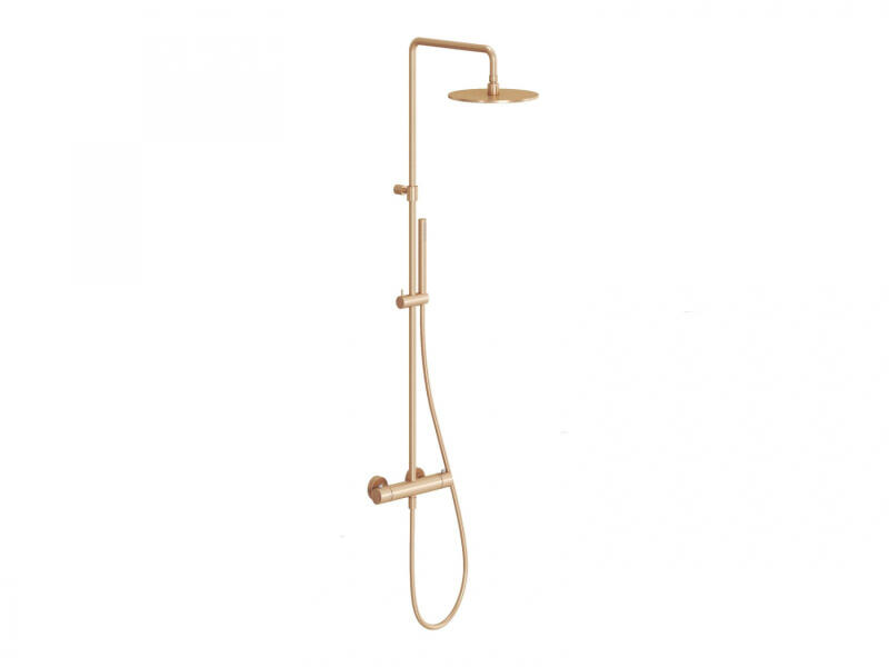 hőoszlop magassága: rugalmas - 122 cm|vízkiállás: 150 mm|kartus: termosztát betéttel a vízhőfok szabályozására|Színkivitelí: RGB: Rose Gold Brushed - rose gold|kivitelezés: rögzített zuhanyfej 25 cm-es négyzet alakú; kézi zuhanyfej - 1 funkcióval rendelkezik, a rögzített zuhanyfej oldalsó irányba is fordítható|megfelelő: minden zuhanysarokhoz|Javasoljuk, hogy a vízkől