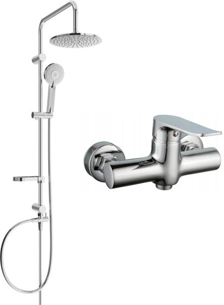 Műszaki adatok: Oszlop anyaga: rozsdamentes acél, ABS Oszlop befejezése: króm Magasság: 950 mm Oszlop szélesség: 22 mm Távolság a faltól: 380 mm Szappantartó Csúszó tartó a kézfejhez Állítható tartókonzolok Esőzuhany anyaga: műanyag Esőzuhany felület: króm Zuhanyfej mérete: ø220 mm Fej anyaga: műanyag A kézidarab felülete: króm Funkciók száma: 3 Csatlakozás: G 1/2"