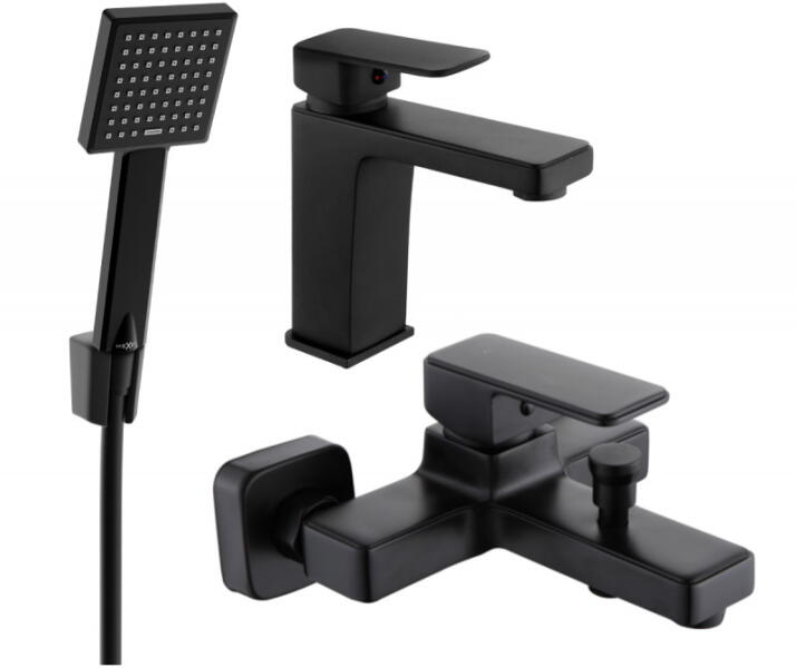 Mamba zuhanyszett fali csatlakozóval matt fekete színű flexibilis zuhanycsővel és zuhanyfejjel fali csatlakozóval