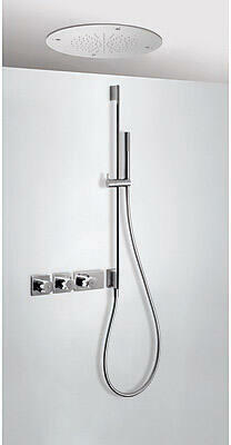 Vízelzáróval és víz mennyiség szabályzóval Rejtett csaptelep Beépített testet tartalmazza Fix esőztető zuhanyfej porlasztó funkcióval Ø600mm 2 állású (29995601) Zuhanytartóval Hossza: 760mm Vízkőálló kézizuhany (03411601) Szatén tömlő(913460915)