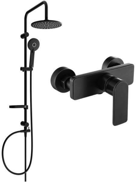 Zuhanyoszlop termosztátos csapteleppel és zuhanyszettel, fekete színben hőoszlop magassága: rugalmas - 86 - 133,5 cm közötti tartományban állítható Vízkiállás: 150 mm Kartus: termosztát betéttel a vízhőfok szabályozására színes kialakítás: CR chrome - fényes króm BL black - fekete Dizájn: termosztátos, hőmérséklet-szabályozás a bal oldalon - CoolFeel kivitelezés: