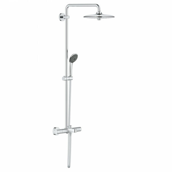Grohe Vitalio Joy System 260 zuhanyrendszer termosztátos kádcsapteleppel, króm 27860001 Garancia: 5 év GROHE SafeStop fogantyú 38°C-nál biztonsági retesszel GROH E SafeStop Plus opcionális hőmérséklet maximalizáló 43°C-nál (csomagolásban) Speed Clean vízkőmentesítő fúvókákkal GROHE DreamSpray tökéletes zuhanysugár GROHE SprayDimmer (fokozatosan állítható vízmennyisé