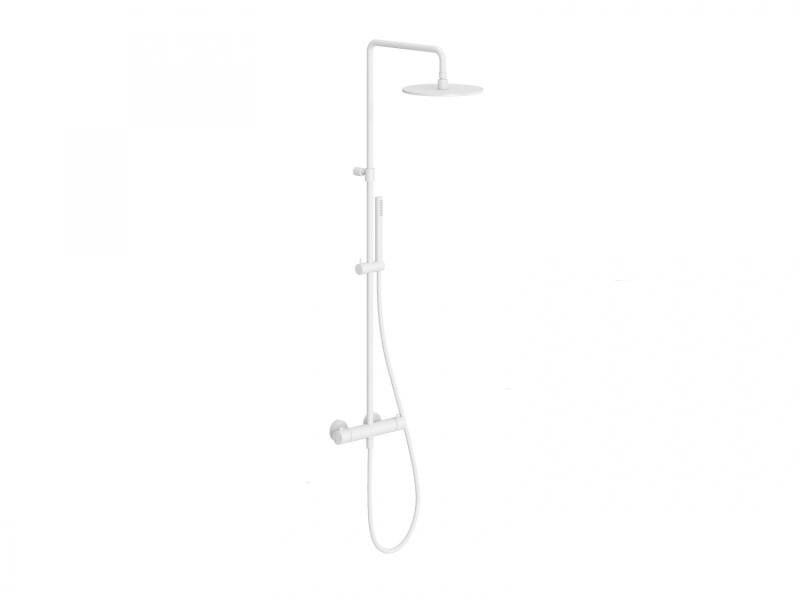 hőoszlop magassága: rugalmas - 122 cm|vízkiállás: 150 mm|kartus: termosztát betéttel a vízhőfok szabályozására|Színkivitelí: WV: White Velvet â matt fehér|kivitelezés: rögzített zuhanyfej 25 cm-es négyzet alakú; kézi zuhanyfej - 1 funkcióval rendelkezik, a rögzített zuhanyfej oldalsó irányba is fordítható|megfelelő: minden zuhanysarokhoz|Javasoljuk, hogy a vízkő