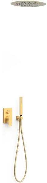 Tres Project falsík alatti zuhanyrendszer Rapid-Box belső egységgel, matt arany 21128006OM Falba süllyesztett szerelés, beépített RAPID-BOX Elzárás és áramlásszabályozás Rapid-bo x és rejtett test, gyorsan és egyszerűen telepíthető Rozsdamentes acélból készült zuhanyfej 380 mm Zuhanyfej rögzítése: mennyezet Zuhanytartó Vízkő elleni kézi zuhany (sárgaréz) Szatén kiv