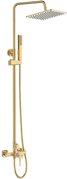 Laveo Pola, zuhanygarnitúra karos csapteleppel, arany fényes, LAV-PLA_G0KX Gyártó: Laveo Sorozat: Fél Típus: zuhanygarnitúra karos csapteleppel, kézizuhannyal és fejzuhannyal Szín: arany Felület: fényes Szélesség: 200 mm Magasság: 940-1385 mm Teljes mélység: 430 mm Szerelés: falra szerelhető Szerelési távolság: 150 mm A kézi fej fúvókáinak száma: 1 Áramlási típusok: e
