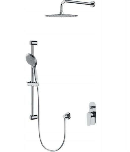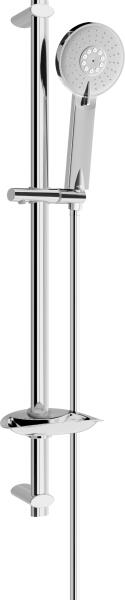 tartalmazza a következőket: zuhanycső, zuhanytömlő, zuhanytartó csúszkazuhanyoldali gömbcsukló a zuhanytömlő kellemetlen elfordulása ellencsőhossz: 1008 mmcső átmérője: 22 mmzuhanytartó rúd: kerekfúrási távolság: 915 mmfém kézizuhanytartóreteszelős kézizuhanytartó csúszkafokozatmentesen állítható csúszkaraszteres dőlésszögállításműanyag fali tartó