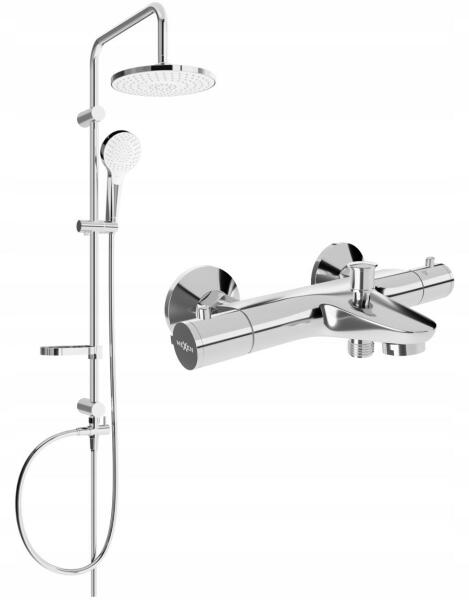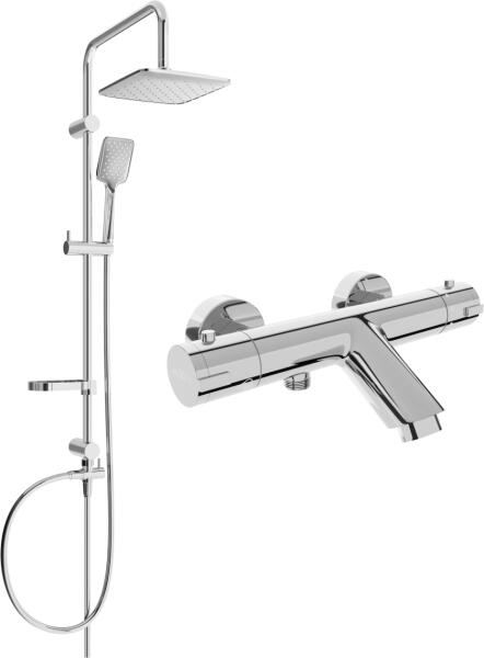 Műszaki adatok: Oszlop anyaga: rozsdamentes acél, ABS Oszlop befejezése: króm Magasság: 950 mm Oszlop szélesség: 22 mm Távolság a faltól: 380 mm Szappantartó Csúszó tartó a kézfejhez Állítható tartókonzolok Esőzuhany anyaga: műanyag Esőzuhany bevonat: króm / fehér Zuhanyfej mérete: ø225 mm Fej anyaga: műanyag Kézidarab felület: króm / fehér Funkciók száma: 3 Csatla