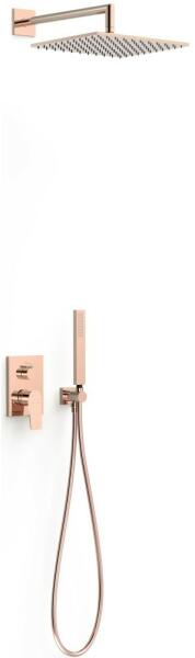 Tres Project falsík alatti zuhanyrendszer Rapid-Box belső egységgel, Rose Arany 21128004OP Falba süllyesztett szerelés, beépített RAPID-BOX Elzárás és áramlásszabályozás Rapid-box és rejtett test, gyorsan és egyszerűen telepíthető Rozsdamentes acélból készült fix zuhanyfej 300x300 mm Zuhanytartó Vízkő elleni kézi zuhany (sárgaréz) Szatén kivitelű rugalmas tömlő