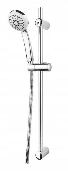 Cersanit Vibe - Zuhanygarnitúra rúddal és csúszó tartóval, 3 funkcionális fejjel, 71 cm-es fémrúd csúszó tartóval és rögzítőkészlettel, S951-021 Gyártó: Cersanit Sorozat: Vibe Termékkód: S951-021 Műszaki adatok: Szín: króm Összeszerelés: felületre szerelt Tömlő hossza: 150 cm 3 funkciós kézfej A csomag tartalma: kézi zuhanyfej, 150 cm-es tömlő, zuhanyoszlop 71 cm