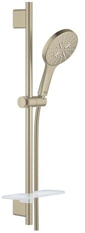 az alábbiakból áll:Rainshower SmartActive 130 kézizuhany (26 545)zuhanyrúd 600 mmfém falitartókkalRotaflex Metal Long-Life TwistStop zuhanycső 1750 mm (28 025)GROHE EasyReach polcGROHE Water Saving 6,6 liter/perc átfolyás-szabályozásGROHE DreamSpray tökéletes zuhanysugárGROHE Long-Life felületkezelésGROHE FastFixation Plus(állítható távolság a tartókonzolok között a meglé