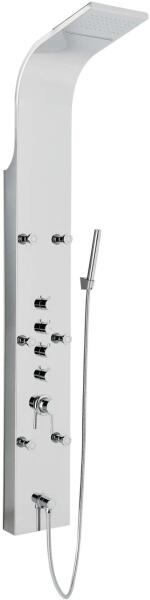 Többfunkciós panel hidromasszázzsal és vízesés hatással MANHATTAN - NIAGARA Olaszország, rozsdamentes acél felülettel, vízkőmentesítő tulajdonságokkal, szennyeződésállósággal, kiváló minőséggel, váltóval. A zuhanykabint hidromasszázs zuhanyrá alakíthatja, ha a régi akkumulátort erre a teljesen felszerelt panelre cseréli az összes tartozékkal. A NIAGARA panel telep
