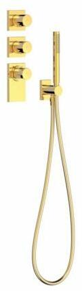 Falba építhető kivitel Tartalmazza a termosztátos belső egységet Vízkőmentesített kézi zuhannyal Szatén zuhanytömlővel Arany színben