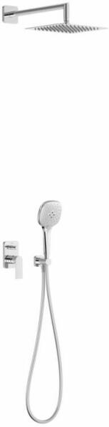 Egykaros, 2 utas zuhanycsaptelep A belső egységet tartalmazza 250 x 250 mm-es gömbcsuklós fejzuhannyal Vízkőmentesített 3 funkciós kézi zuhannyal és fali tartóval Szatén zuhanytömlővel Króm kivitel
