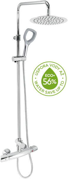 Novaservis Metalia ECO + Zuhanygarnitúra ECO + zuhany termosztatikus csaptelep 57963, króm, SETECO / TER, 0 Első osztályú króm kivitel. A készlet tartalmaz falra szerelhető, felső kivezetésű, 150 mm-es osztástávolságú termosztatikus zuhanycsaptelepet, minőségi és tartós, KEROX termosztatikus patronnal 7 év garanciával, 150 cm- es tömlőt, 250 mm átmérőjű fejzuhanyzót, g