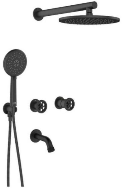 LAVEO Muro - rejtett kád/zuhany szett, fekete, BAU_711P A MURO sorozat tetőtéri belső terekhez készült. A csaptelepen stilizált gombok találhatók, amelyek a Łódži-i gyár történetére utalnak, ahonnan a LAVEO márka származik. A csapokhoz stílusosan illeszkedő bordás kifolyók sorozata ipari jelleget kölcsönöz. A MURO vasalat 8 fürdőszobai modellből áll – köztük egy cs