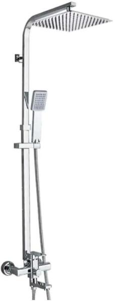 Falba építhető kivitel A belső egységet is tartalmazza Egykaros, 2 utas zuhanycsaptelep Kádkifolyóval Vízkőmentesített 110 mm-es kézi zuhannyal és fali tartóval Szatén zuhanytömlővel Króm kivitel