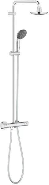 az alábbiakból áll:vízszintesen elforgatható 390 mm-es zuhanykarfalon kívüli termosztát Aquadimmerrellehetővé teszi a vízkimenetek közti váltásthead shower Ø 160 mm, 9.5 l/minzuhanysugár: Raingömbcsuklóvalelfordítható könyök ±15°Handbrause Vitalio Start 100 kézizuhany 2 vízsugárral, 5,7 l/minRain, Jet funkciókmagasságában állítható kézizuhany tartóVitalioflex Tre