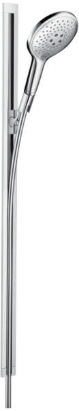Hansgrohe Raindance Select S, zuhanygarnitúra 150 3jet zuhanyrúddal 90 cm, fehér/króm, HAN-26626400 Termékleírás és paraméterek tartalmazza: kézi zuhany, zuhanyrúd, zuhanytömlő, csúszka zuhanyfej mérete: 150 mm áramlási típus: RainAir, CaresseAir, Mix kényelmes váltás a Select gombbal a dőlésszög 90°-kal változtatható, a csúszka jobbra-balra, fel-le forgatható maximál