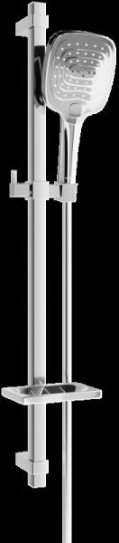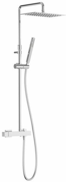 Falon kívüli kivitel Egykaros zuhanycsaptelep 300 x 200 mm-es gömbcsuklós fejzuhannyal Teleszkópos zuhanyrúddal Vízkőmentesített kézi zuhannyal Szatén zuhanytömlővel Króm kivitel