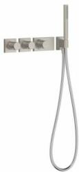 Falba építhető kivitel Tartalmazza a belső termosztátos egységet Átfolyáskorlátozóv al Vízkőmentesített kézi zuhannyal és fali tartóval Szatén zuhanytömlővel Acél színben