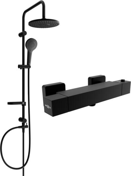 Műszaki adatok: Oszlop anyaga: rozsdamentes acél, ABS Oszlop felület: fekete Magasság: 950 mm Oszlop szélesség: 22 mm Távolság a faltól: 380 mm Szappantartó Csúszó tartó a kézfejhez Állítható tartókonzolok Esőzuhany anyaga: műanyag Esőzuhany kivitel: fekete Zuhanyfej mérete: ø225 mm Fej anyaga: műanyag A kézidarab felülete: fekete Funkciók száma: 3 Csatlakozás: G 1/2"