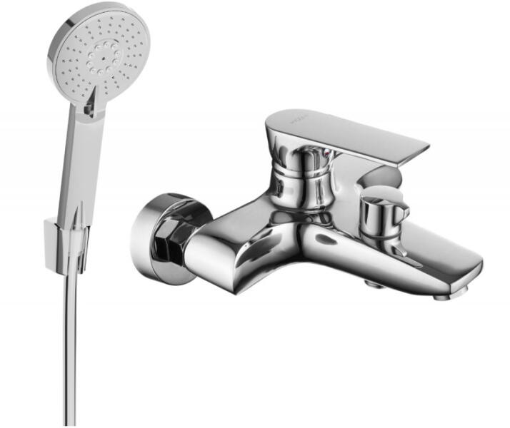 A zuhanykészlet tartalmaz egy Viana kádcsaptelepet zuhanygarnitúrával és egy forgatható kifolyót a kád vagy vödör feltöltéséhez. Nem tartalmaz azonban tartozékokat (fejzuhany, kézizuhany és tömlő), így pontosan az Ön kívánsága szerint állíthat össze egy zuhanykészletet. Az új Viana sorozat első pillantásra lenyűgöz robusztus felépítésével és első osztályú ki